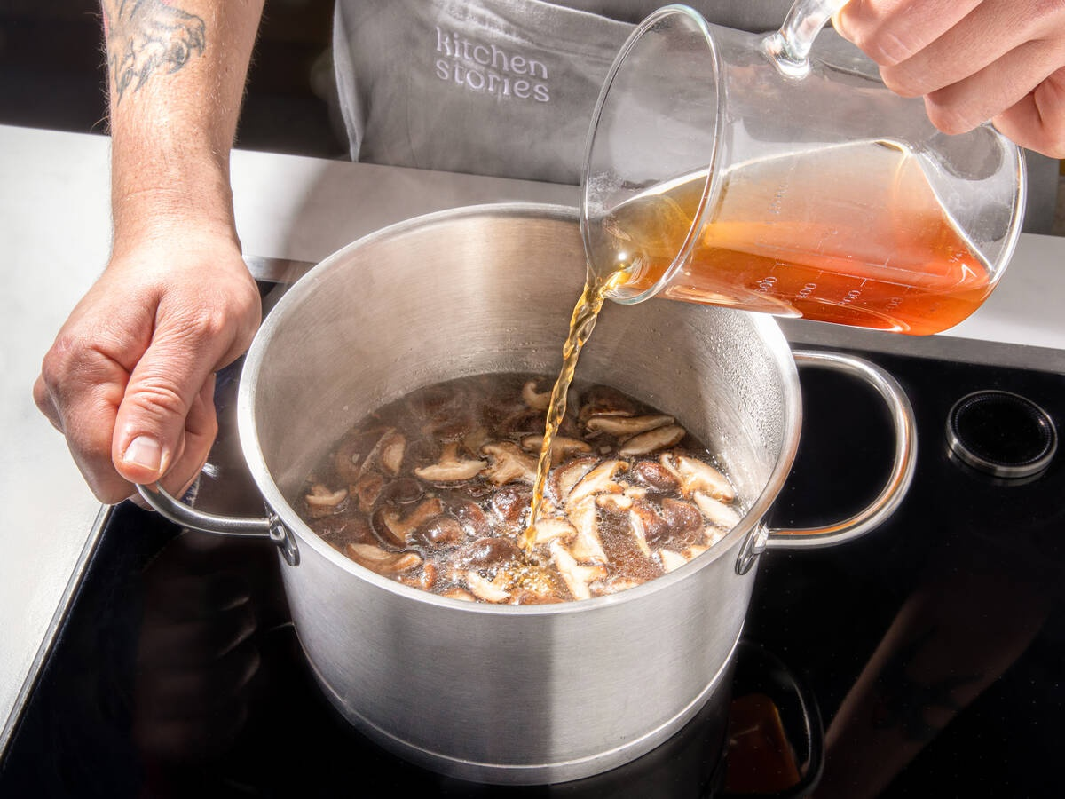 + Thêm nấm đông cô và nấu cho chín trong 3 phút.