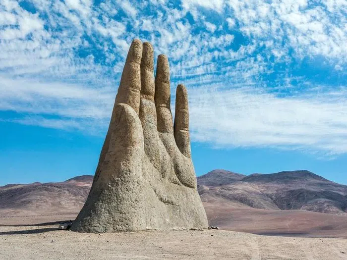 Cách thành phố Antofagasta khoảng 60km, băng qua vùng sa mạc rộng lớn này là Pan American Highway, còn được gọi là Đường số 5 ở Chile. Dọc theo đường cao tốc, từ hư không, một bàn tay khổng lồ vươn lên từ cát sẽ dần hiện ra trước mắt du khách.